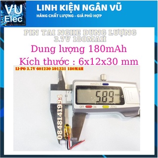 Pin Li-Po 3.7V 180mAh 601230 591231 (Lithium Polymer) cho tai nghe Bluetooth, loa Bluetooth, định vị GPS, máy nghe nhạc