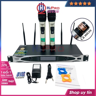 Đôi micro không dây Shure UGS9, micro karaoke không dây cao cấp 4 râu anten,quà 50k 2 chống lăn mic và 4 pin-H2pro tech