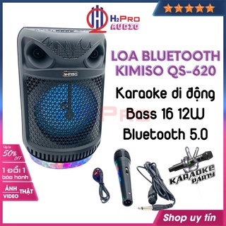Loa Bluetooth Karaoke Mini, loa hát karaoke KIMISO QS-620 bass 16 cao cấp-Đèn led 7 màu, Tặng kèm 1 Micro có dây - H2pro
