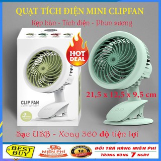 Quạt mini tích điện phun sương kẹp bàn 3 tốc độ Clip Fan cổng sạc USB, xoay 360 độ tiện lợi