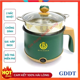 Nồi lẩu điện mini, Ca nấu mì, Nồi nấu đa năng 2 nấc nhiệt có tay cầm 18cm, Kèm tặng giá hấp inox