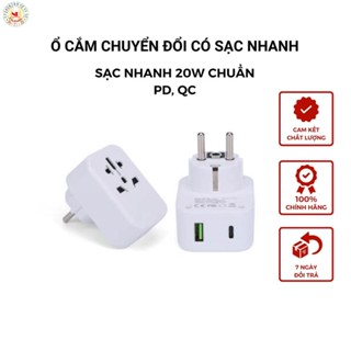 Ổ Cắm Chuyển Đổi Đa Năng Sang 2 Chân Tròn Kèm Sạc Nhanh Cho Điện Thoại Chuẩn PD, QC, Phích Cắm Nhỏ Gọn, Tiện Lợi