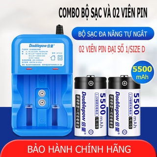 Combo bộ sạc DP-D02 và 2 viên pin đại 5500mAh (size D) chính hãng Doublepow