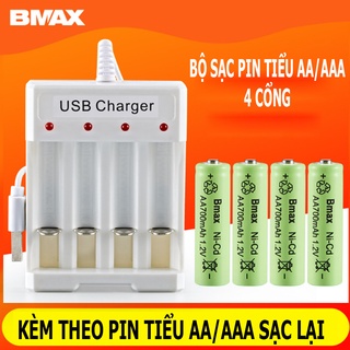 Combo Bộ sạc pin tiểu AA AAA 4 cổng Bmax B04 kèm theo 04 viên pin sạc lại AA/AAA