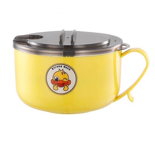 Bát ăn mỳ vịt vàng 1 lít có quai ,ruột inox ,có nắp đậy tiện lợi