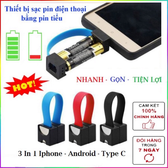 ⚡️𝓝𝓱𝓪𝓷𝓱, 𝓖𝓸̣𝓷, 𝓝𝓱𝓮̣⚡️Thiết bị sạc pin điện thoại bằng pin tiểu cho Iphone, Android Micro USB, Type C
