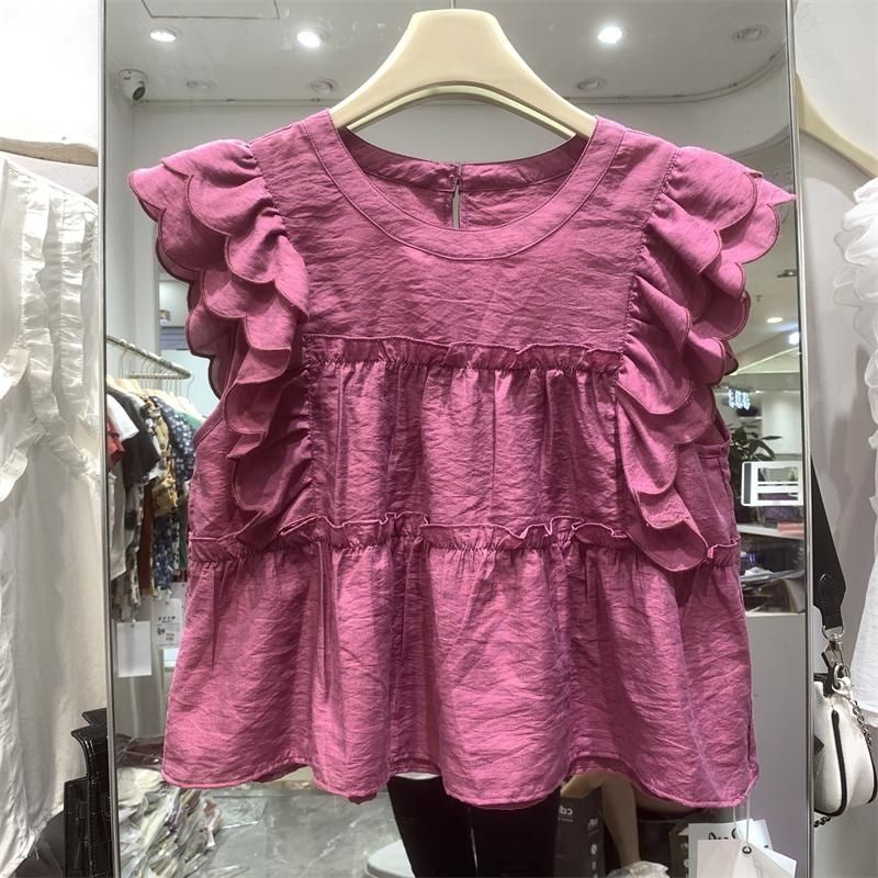 Giới thiệu [Thiết Kế Áo Sơ Mi Cổ Tròn Tay Bay Pháp Ngọt Ngào Mùa Hè Dáng Rộng Sang Trọng Niche Cho Nữ