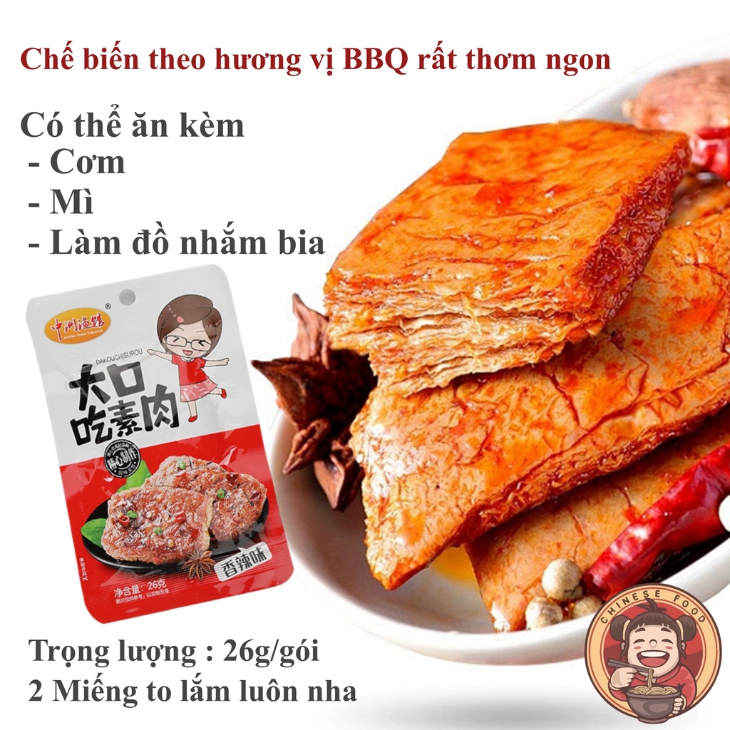 Lại thêm một siêu phẩm nữa dành cho các tín đồ ăn vặt Thịt nướng thơm cay ngon lắm luôn đây ạ ! Gia vị tẩm ướp cực kì thơm ngon, ăn là sẽ nghiện luôn ạ Thành phần chính là đậu nành , tỏi , ớt , nên ăn chay hay mặn đều được nha .