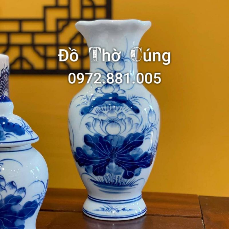 👉Sản phẩm là bộ đồ thờ vẽ sen màu xanh lam cổ như hình. 👉Sản phẩm là hàng Bát Tràng Chính Hãng 👉Sản phẩm cam kết là hàng VẼ TAY thủ công 100% nên giá thành sẽ cao hơn dán DeCal. 🔴 Bộ sản phẩm gồm 12 món Shop chia bộ sản phẩm cho 3 kích cỡ bàn thờ nhé. ⛔️ Bộ 1 : Bộ nhỏ phù hợp bàn thờ treo , bàn thờ nhỏ kích cỡ dài từ 60cm đến 1m 1 Bh p14 :240k 2 choé nhỏ :2x80 1 Nậm nhỏ :1x100 1 đèn nhỏ :1x 180 2 lọ hoa nhỏ :2x 150 1 ống hương nhỏ :1 x 130 1 bồng 20 :1x 100 1 kỉ 3 chén :1x 150 1 bát trà :1x 130 1 đài sen đựng trầu cau: 1x 150 1 đèn dầu kèm bóng :1x 180 ⛔Bộ thứ 2 . Mô hình y hệt bộ nhỏ nhưng kích cỡ lớn hơn - Phù hợp bàn thờ dài 1m đến 1m50 ⛔Bộ thứ 3 mô hình cũng giống như bộ 1 và bộ 2 kích cỡ lớn hơn để phù hợp bàn thờ dài 1m50 đến 1m80 👉Quý vị có nhu cầu mua vui lòng inbox để được shop tư vấn hoặc liên hệ 0972881005 - 0983041316 , cảm ơn quý khách đã quan tâm.