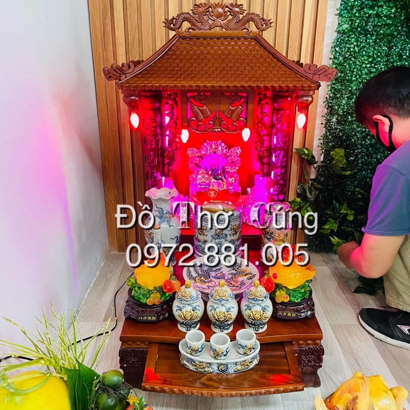 Giới thiệu Bộ đồ thờ thần tài Men rạn đắp nổi cao cấp ban mái đình gỗ hương