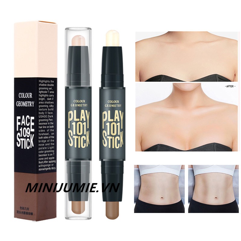 ✽ Thỏi 2 đầu với 2 tông màu khác nhau ( sáng và tối ) ✽ Che khuyết điểm về góc cạnh và tạo hình cơ thể ✽ Giúp tạo đường nét cho khuôn mặt của bạn thêm tuyệt vời.