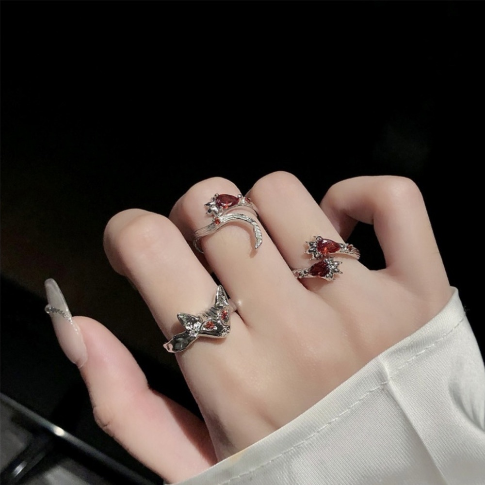 Giới thiệu Thời trang cá nhân màu đỏ zircon mèo mở vòng phụ nữ linh hoạt INS vòng chỉ số thời trang