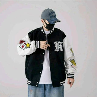 Áo khoác bomber dù nhung bóng chày unisex form rộng 80-90 nam nữ ulzzang