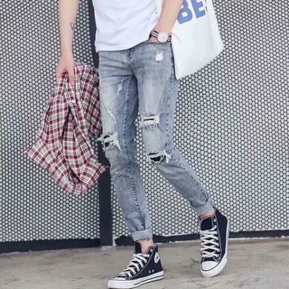 Quần jean nam màu xanh vải bò rách kiểu ( hình thật) 19022
