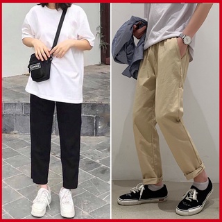 Quần kaki baggy nam nữ unisex trơn cạp chun dáng dài, ống suông basic đơn giản cá tính