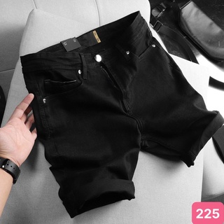 Quần short đùi jean nam đen trơn co giãn,quần lững nam đen trơn chất bò không bay màu SJN225