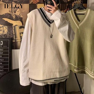 Áo sweater Sát Nách Cổ Chữ v Màu Khối Lập Phương IELGY preppy Cho Nam