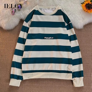 Áo sweater IELGY cổ tròn họa tiết kẻ sọc phong cách Hàn Quốc trẻ trung thời trang dành cho nam