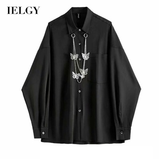Áo IELGY tay dài dáng rộng phối dây xích phong cách cổ điển cho nam