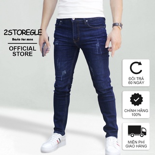 Quần Bò Nam Xanh Đậm Xước 2STOREGLE Dáng Ôm Slim Thời Trang Chất Đẹp Ít Phai Màu Vải Mịn