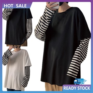 Áo Thun Cổ Tròn Giả Hai Lớp Họa Tiết Kẻ Sọc Thời Trang Mùa Thu Cho Nam