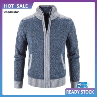 Áo Khoác Sweater Dệt Kim Tay Dài Cổ Đứng Khóa Kéo Phối Màu Cá Tính Cho Nam