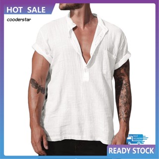 Áo nam Tay Ngắn Cổ Đứng Màu Trơn Phối Nút Thời Trang Mùa Hè