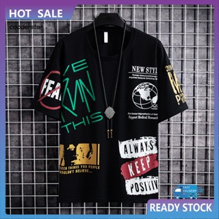 Áo Thun Tay Ngắn Cổ Tròn Dáng Rộng Thoáng Khí In Chữ Phong Cách Hip Hop Thời Trang Mùa Hè Cho Nam
