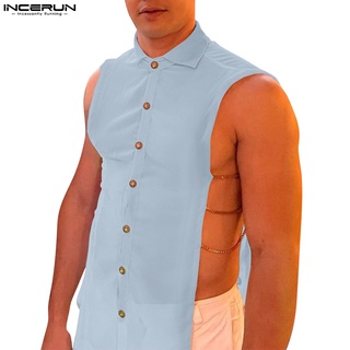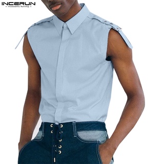 INCERUN Áo Sơ Mi Không Tay Phong Cách Phương Tây Có 3 Màu Thời Trang Cho Nam