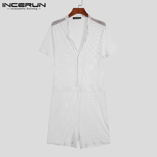 Áo liền quần INCERUN dáng ngắn tay ngắn phối lưới xuyên thấu phong cách mùa hè quyến rũ dành cho nam
