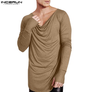 Áo thun Incerun dệt kim tay ngắn màu trơn cá tính cho nam