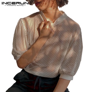 INCERUN Áo Thun Tay Lửng Xuyên Thấu Họa Tiết Chấm Bi Thời Trang Mùa Hè Cho Nam