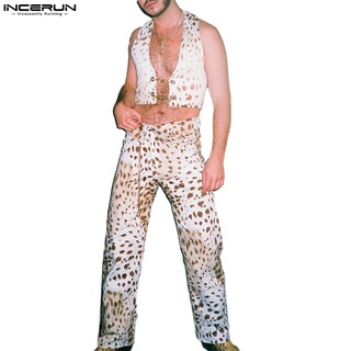 INCERUN Bộ Quần Áo In Họa Tiết Da Báo Thời Trang Cá Tính Cho Nam
