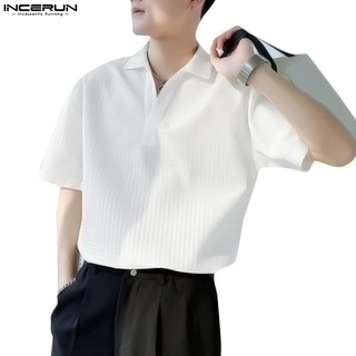 Áo sơ mi INCERUN tay ngắn cổ chữ V thời trang nam tính