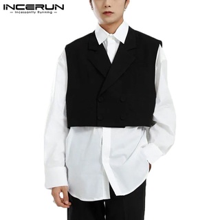 Áo Sơ Mi Hai Mảnh INCERUN Tay Dài Giả Áo Giả Vest Thời Trang Hàn Quốc