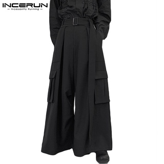 Quần dài INCERUN ống rộng màu đen có thắt lưng thời trang cho nam