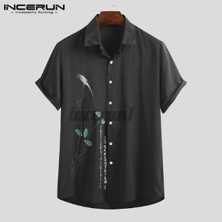 Áo sơ mi INCERUN tay ngắn in họa tiết cá tính cho nam