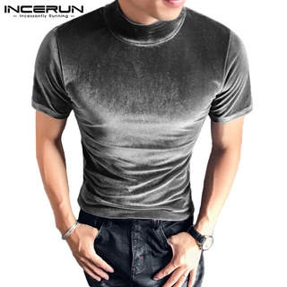 Áo thun INCERUN vải nhung cổ tròn tay ngắn thời trang mùa hè dành cho nam
