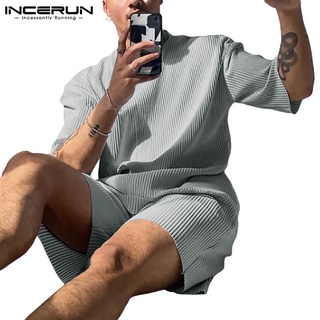 Bộ đồ INCERUN gồm áo tay ngắn và quần short dáng rộng thời trang dành cho nam
