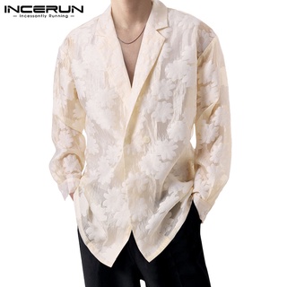 Áo sơ mi INCERUN tay dài thoáng khí thêu hoa nhìn thấu thời trang cho nam