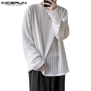 Áo cotton INCERUN dài tay cổ tròn có độ co giãn thoải mái dành cho nam