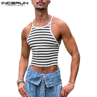 Áo hai dây INCERUN hở lưng hoạ tiết kẻ sọc thời trang cho nam