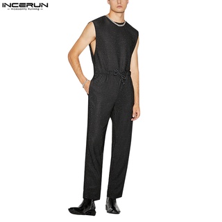 Áo liền quần INCERUN cổ bẻ không tay buộc dây cho nam