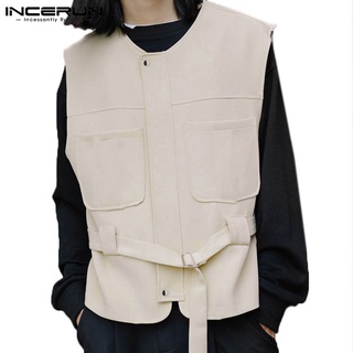 Áo Sweater INCERUN cổ tròn không tay thời trang xuân thu xẻ tà hai bên thời trang dành cho nam