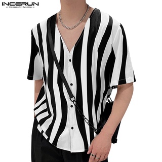 INCERUN Áo Sơ Mi Tay Ngắn Dáng Rộng Phong Cách Đơn Giản Cho Nam