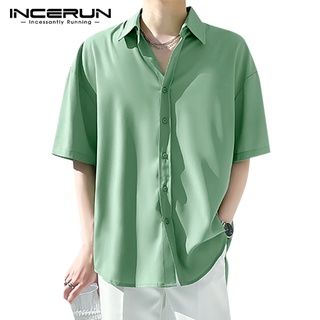 Áo sơ mi nam INCERUN ngắn tay màu sắc đơn giản