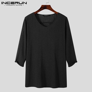 Áo thun INCERUN mỏng cổ chữ V màu trơn co giãn thời trang thông thường cho nam