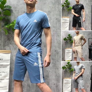 Bộ thể thao hè 3 sọc ngắn tay tập gym nam cao cấp xuất khẩu BCT05