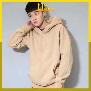 Áo hoodie trơn màu be nón 2 lớp vải nỉ bông mềm mịn