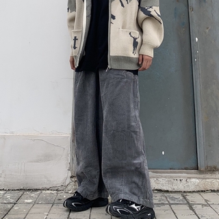 Quần dài nhung tăm 228898 ống suông rộng màu trơn phong cách thường ngày cho nam và nữ